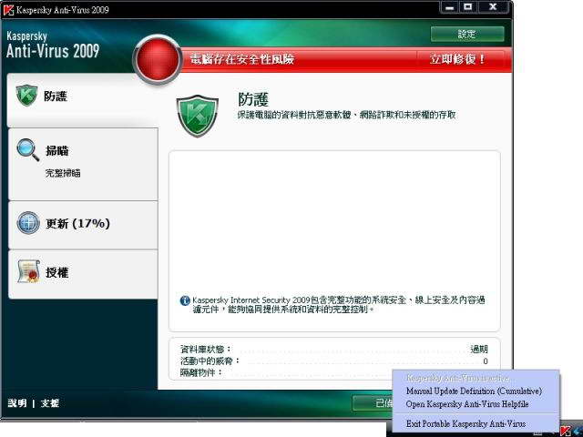 卡巴斯基 AntiVirus 2009繁體中文版免安裝