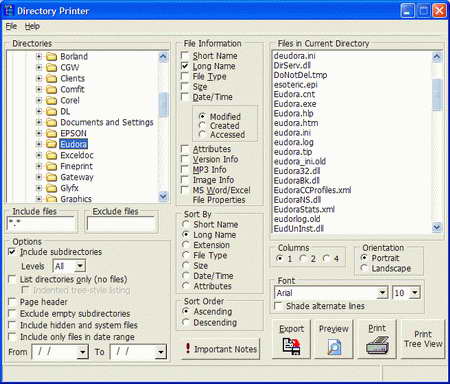 將檔資訊如大小、日期、屬性等加入列印,也可依日期、大小、檔案名等來排序列印,