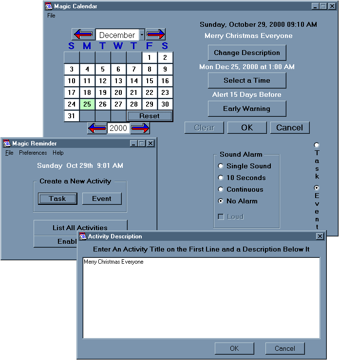 行事曆讓你知道約會以及你要作什麼。它有快速尋找的能力、密碼保護、電話撥接、