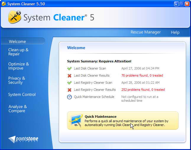 Pointstone System Cleaner是一款系統清理軟體,能使您的電腦的速度和性能恢