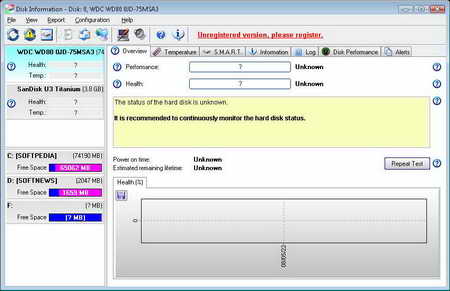溫度、S.M.A.R.T值等。本工具同時還可以測試硬碟的即時傳輸率以便用來做為性能