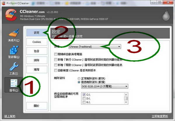 CCleaner V2.25.1025 (垃圾檔案清除工具)繁體中文綠色版