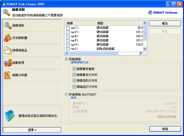 SBMAV Disk Cleaner 2009【清除系統垃圾】v3.37 繁體中文綠色破解版