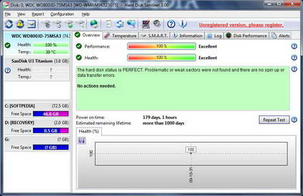 Hard Disk Sentinel能夠檢測硬碟狀態、健康程度、以及性能其中包括每個硬