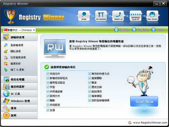 Registry Winner是一款一流的登錄表錯誤清理及系統效能最佳化軟體,此軟體不