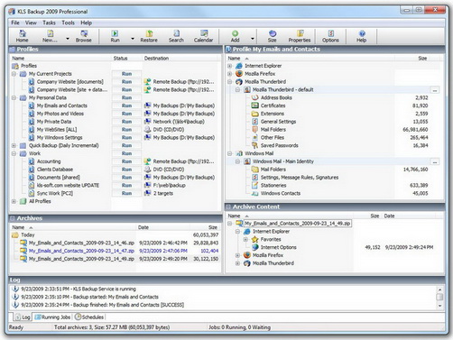 compressed in standard Zip, 7-Zip or SQX format. KLS Backup 2009 can back up files and