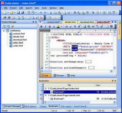 (例如ASP+HTML, PHP+HTML等); -其他主要的代碼編輯功能(撤銷,書簽,查找,