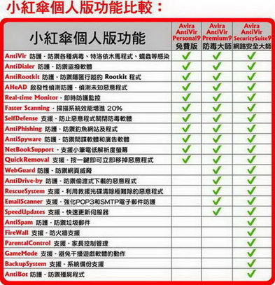 avira小紅傘領先的偵測及排除病毒、蠕蟲、木馬、廣告軟體/間諜程式、撥號程式及