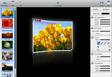 扭曲、倒影、陰影、邊角等效果並支援添加文本(可視作為圖片添加浮水印);3D Image