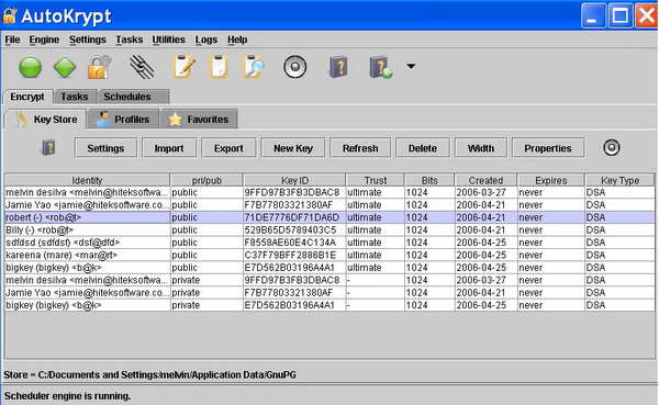 密與解密的軟體,加密方法包含:基本的密碼,產生鎖鑰,公開的鎖鑰,私