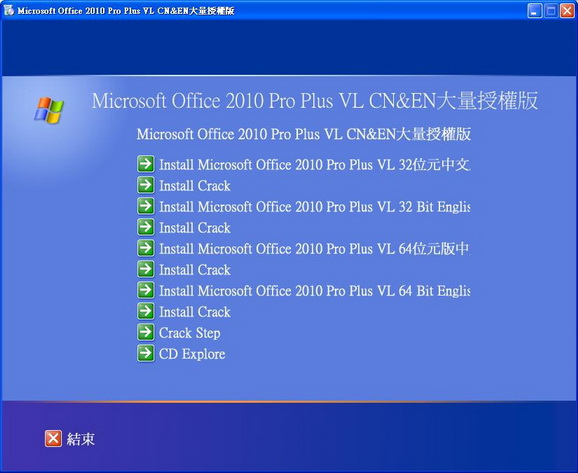 Microsoft Office 2010 ProPlus 中文+英文+32+64bit破解版(4 in 1版本)(DVD一片裝)